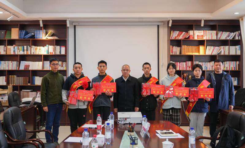 欢送仪式上,赵铁副书记代表学校向5名应征入伍大学生赠送纪念品和入伍慰问金。与会老师与入伍学生进行深入交流,祝愿他们云程发轫,万里可期,早立新功,捷报频传。