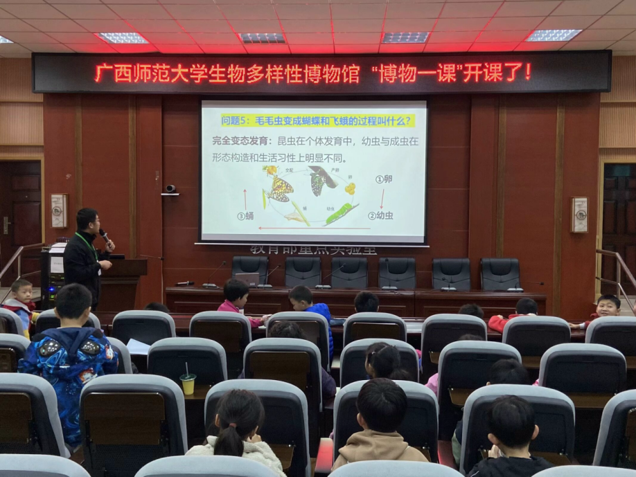 3月16日,广西师范大学生物多样性博物馆生物公益科普课程“博物一课”成功开课,吸引近百组家庭,300多名市民前来参观体验。