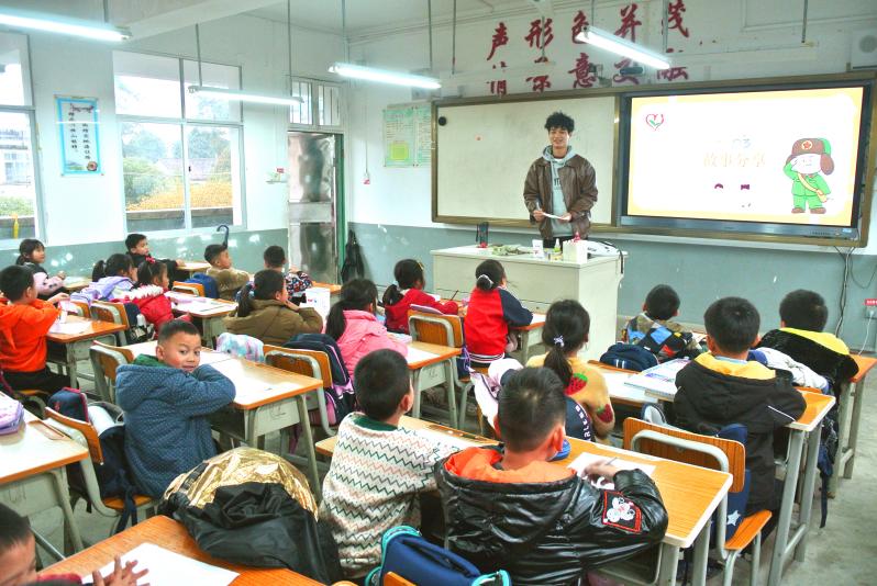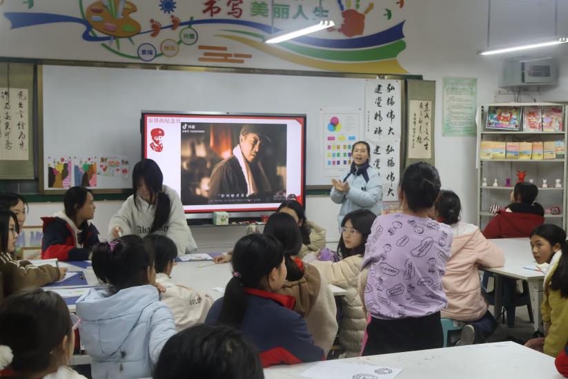 美术学院志愿者们走进孩子们中间,进行雷锋经典影片展播,带领学生们学唱经典歌曲《学习雷锋好榜样》,给孩子们讲解雷锋同志的感人故事及“学雷锋”精神的重要意义。