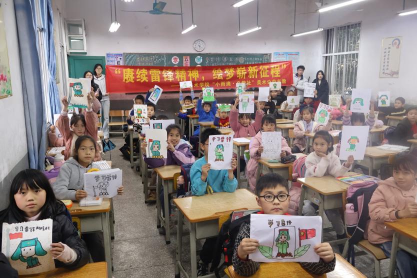 三月春光媚,“锋”暖入心扉。在“学雷锋”月这个特殊的三月里,3月14日,美术学院志愿服务队“小雨滴·义教社”自发组织志愿者前往雁山区良丰农场子弟学校,以学习雷锋精神为主题开展美术公益支教活动。