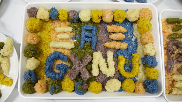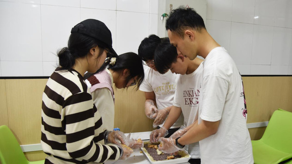 活动分为六个小组,每个小组都包含有少数民族同学。伴随着五色糯米饭的清香与老师同学们的欢声笑语,每个人都注入了自己对五色糯米饭的热情并有着相同的目标——齐心协力地完成这幅富有意义的“画卷”。当大家用心将五色糯米饭融合在一起时,寄托的是对未来生活的美好向往与祝福,如民族之花般长盛不衰,更加象征着各民族紧密联系,反映中华民族共同体意识在同学们心中萌芽并不断扎根。