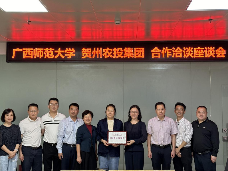 向广西贺州市农业投资集团有限公司颁发“就业育人共建单位”牌匾
