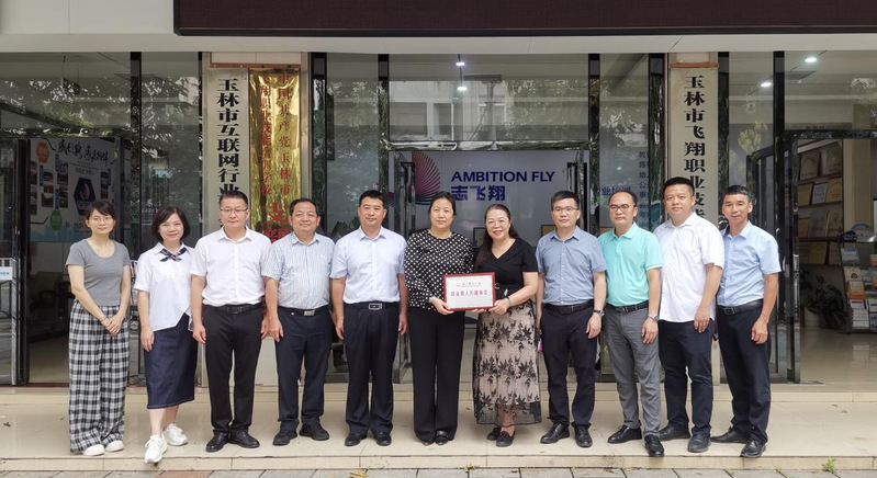 向玉林市志飞翔教育颁发“就业育人共建单位”牌匾
