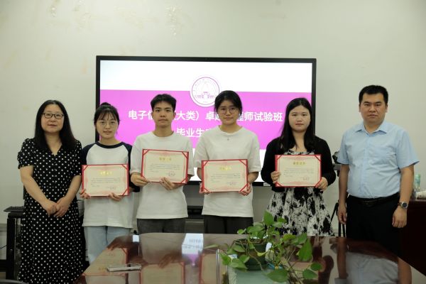 最后,学院相关领导为电子信息(大类)卓越工程师试验班学生颁发荣誉证书,学业导师代表与其所指导的学生合影留念。