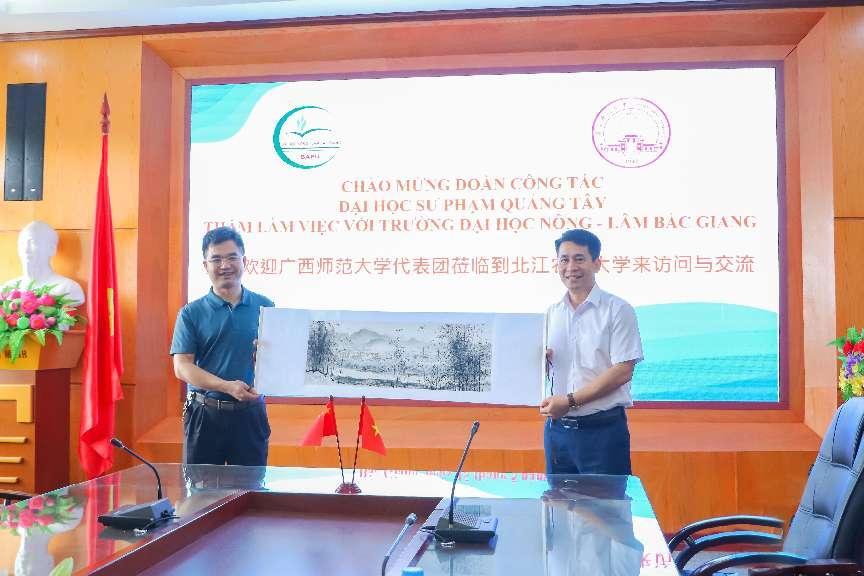 代表团团长与越南北江农林大学副校长阮俊阳座谈会上互赠纪念品
