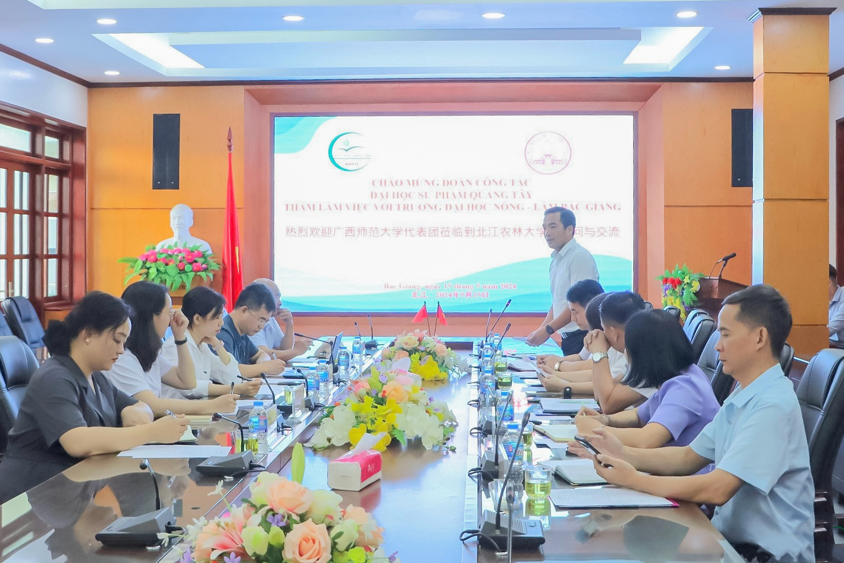 代表团与越南北江农林大学副校长阮俊阳、国际科学与合作处负责人阮功成及教师代表交流洽谈