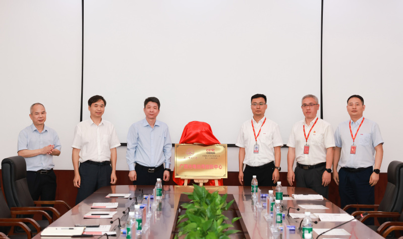 “广西光电协同创新中心”揭牌仪式在中国电科34所举行,广西师范大学党委副书记、校长孙杰远,校党委常委、副校长黄文韬、李先贤,中国电科34所所长、党委副书记李朝锋,副所长曾智龙、李博共同揭牌