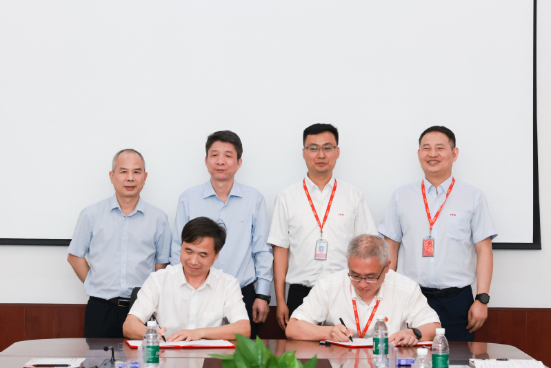 在广西师范大学党委副书记、校长孙杰远,校党委常委、副校长李先贤,中国电科34所所长、党委副书记李朝锋,副所长李博的共同见证下,校党委常委、副校长黄文韬和中国电科34所副所长曾智龙代表双方签署合作框架协议