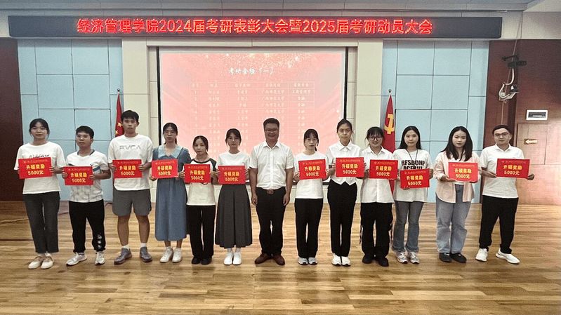 青春正逢盛世,奋斗恰如其时。为表彰激励考研优秀学子,营造勤学奋进的优良学风,5月23日下午,经济管理学院在文二219学术报告厅举办2024届考研表彰大会暨2025届考研动员大会,学院分管学生工作负责人主持本次会议,学院领导班子成员、系主任、毕业班班主任、毕业班辅导员、2020级升硕成功的本科生代表、2021级本科生以及2022级硕士研究生共200余人参加本次会议。