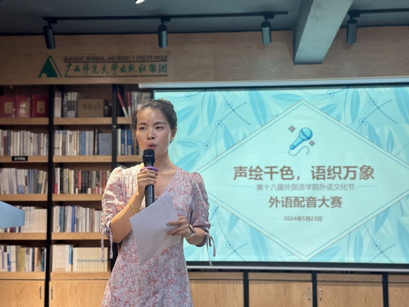 为丰富校园文化生活,营造浓厚的语言文化学习氛围,提高学生外语口语表达能力,5月23日,外国语学院于雁山校区独秀书房举办第十八届外语文化节之“声绘千色,语织万象”配音比赛。本次比赛由外国语学院刘雨薇老师、崔凯老师、黄丹怡老师担任评委,各年级辅导员及学生代表50余人参加。