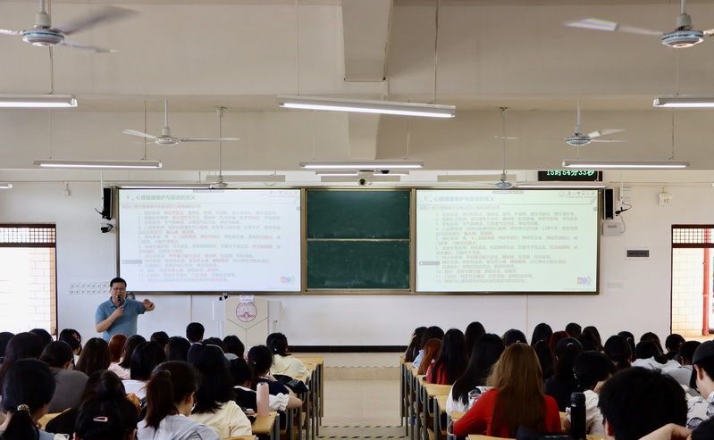 何昭红教授从心理健康维护与促进的意义出发,为大家解释了“什么是真正的健康”及“为什么关注心理健康”。他通过问卷量表等工具让学生参与心理健康自查,引导学生发现问题并解决问题,形成了积极活跃的互动氛围。同时,他结合大学生学习生活中求职创业、考研升学以及预防网络诈骗等重点问题深入分析影响大学生心理健康的因素,分享了塑造积极的心态、增强解决问题的能力、增加社会支持度三种心理健康维护与促进的策略,并鼓励大家在出现心理问题时积极寻求学校心理健康中心的专业帮助。