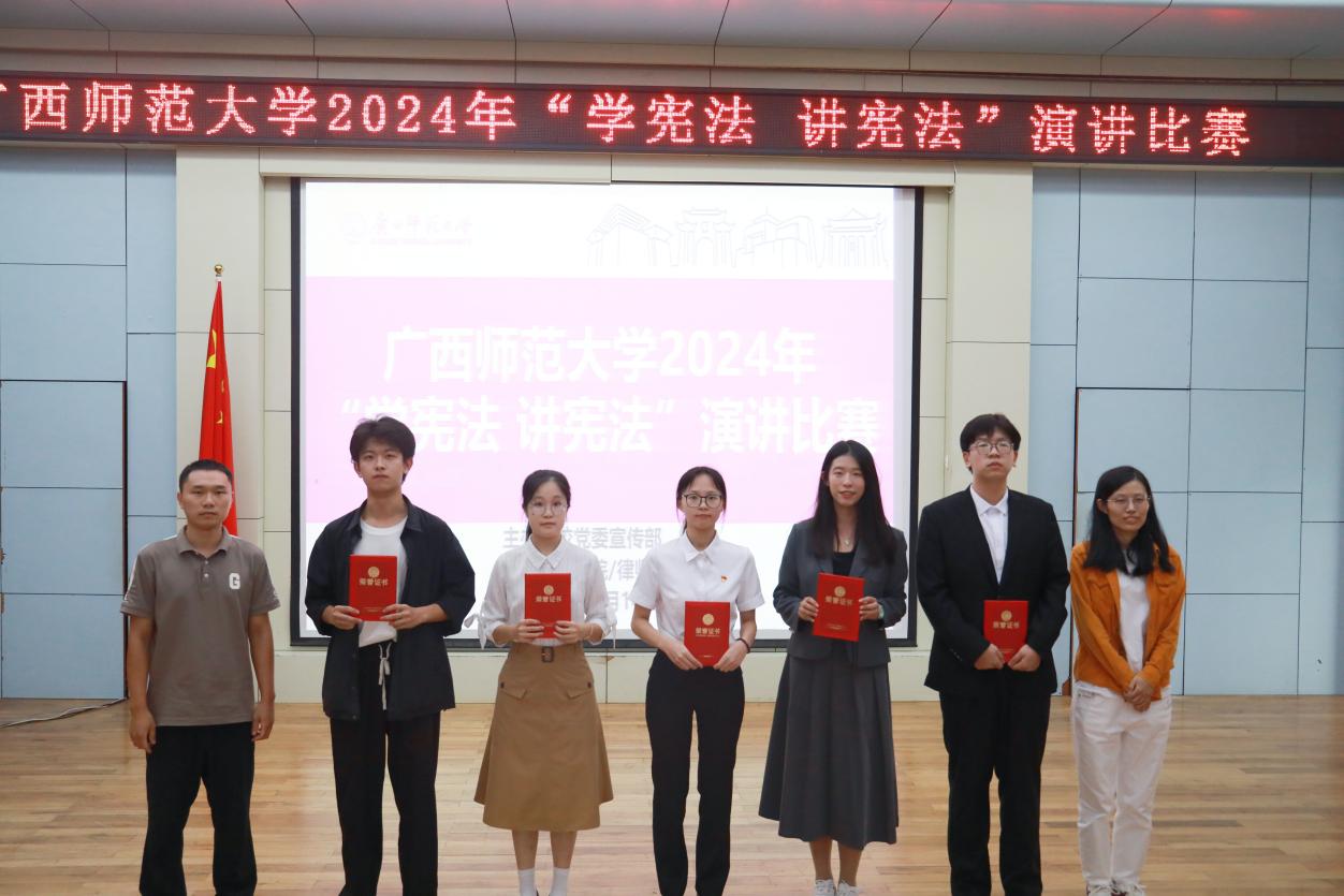 为深入学习贯彻习近平法治思想,弘扬宪法精神,厚植爱国情怀,9月14日下午,由校党委宣传部主办,法学院/律师学院承办的2024年“学宪法讲宪法”演讲比赛在雁山校区文二区219报告厅成功举办。