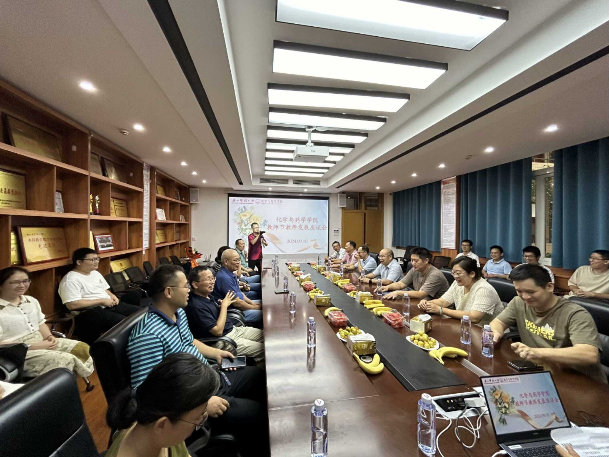 9月10日下午,学院组织老中青教师代表开展座谈会。座谈会上,学院党委主要负责人向教师代表致以节日祝福和诚挚问候,并衷心感谢广大教职工众志成城、攻坚克难,稳步推进学院在教学、科研、人才培养、管理服务等方面持续发展所作出的贡献。他强调每位教师要深入学习党的二十届三中全会精神、新时代高等教育发展动态和教育家精神,锤炼理想信念、弘扬高尚师德师风。座谈会上,老教师们分享职业生涯感悟、传授教育教学经验,引导青年教师树立职业理想,做好职业发展规划。青年教师纷纷表示,将立足岗位,潜心从教,做好教育家精神的弘扬者和践行者,坚持以“四有”好老师标准要求自己,牢固树立“躬耕教坛,强国有我”的志向与抱负,为教育强国建设和学校及学院高质量发展建设贡献力量。