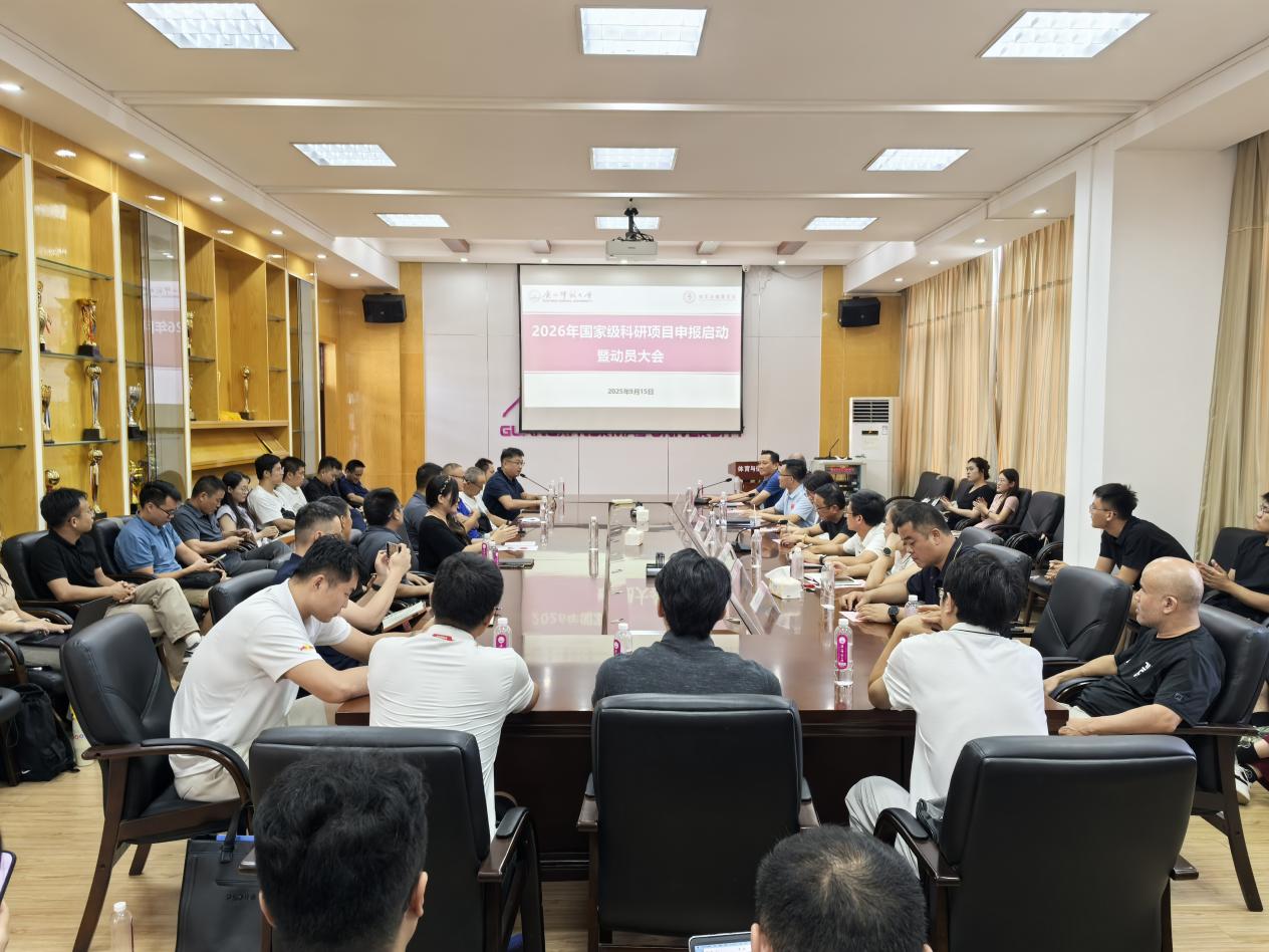 9月15日下午,体育与健康学院在雁山校区体育楼516会议室召开2026年国家级科研项目申报启动暨动员大会。会议特邀广西师范大学政治与公共管理学院、教育学部主要负责人现场指导,学院全体班子成员、符合申报条件的教师及科研骨干参会。