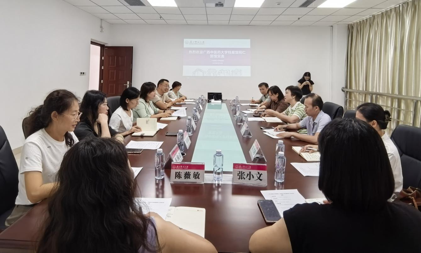 9月19日上午,广西中医药大学档案馆馆长贺西南一行5人来馆开展实地调研,档案馆负责人及有关工作人员在档案馆9楼会议室开展座谈交流。
