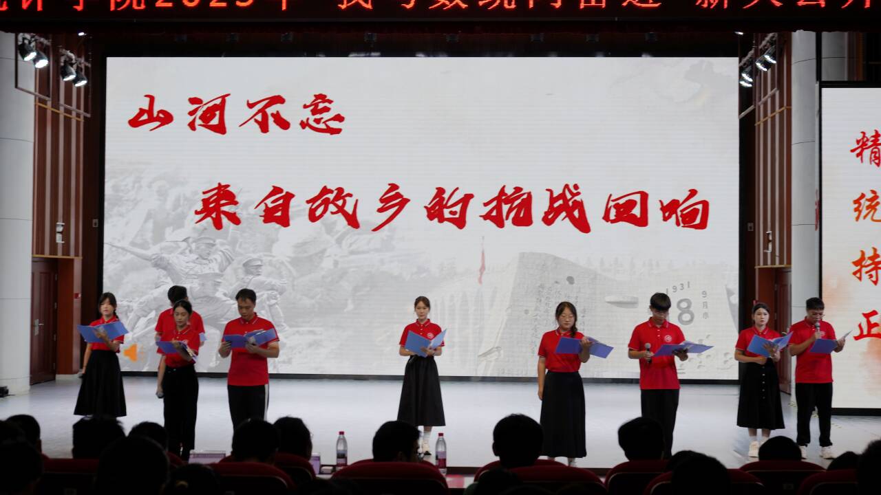 思政课以“薪火传承”为主题,展示了院训、办学精神和吉祥物等学院文化形象与精神符号。来自各抗战热土的9名新生代表献上诗歌朗诵《山河不忘:来自故乡的抗战回响》,他们讲述了家乡的抗战故事,用青春的声音共同纪念中国人民抗日战争暨世界反法西斯战争胜利80周年。