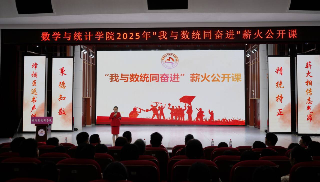 9月19日,数学与统计学院2025年“我与数统同奋进”薪火公开课在雁山校区举行,学院领导、新生年级专业班主任代表、辅导员和2025级全体新生参加活动,同上一堂思政大课。