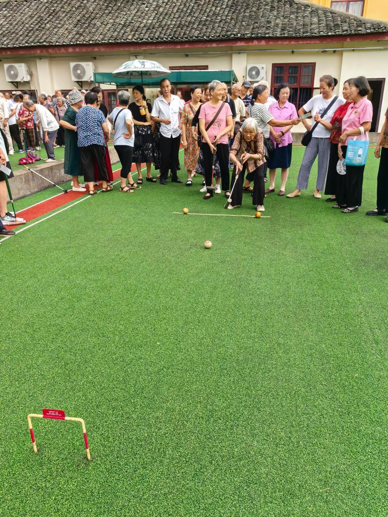 以球为媒、以赛传情,9月29日上午,我校离退处精神打造的2025年离退休教职工“金秋独秀·幸福师大”系列活动之门球击准赛在王城、育才两校区同时开赛。本次赛事共有480余名离退休教职工参加。