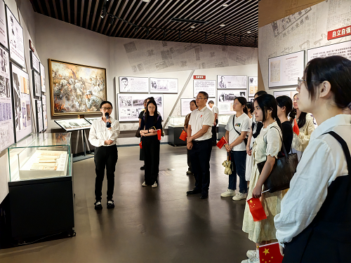 参观后,学院党委相关负责人以“弘扬抗战精神,勇担时代使命”为主题,为师生党员代表讲授微党课,他结合我校历史进行总结,鼓励大家铭记历史,坚定理想信念,激发创作热情和爱国热情,希望大家能将这份热情转化为实际行动,在未来的学习与工作中勇挑重担、砥砺前行,为学院高发展添砖加瓦,为国家繁荣贡献力量。