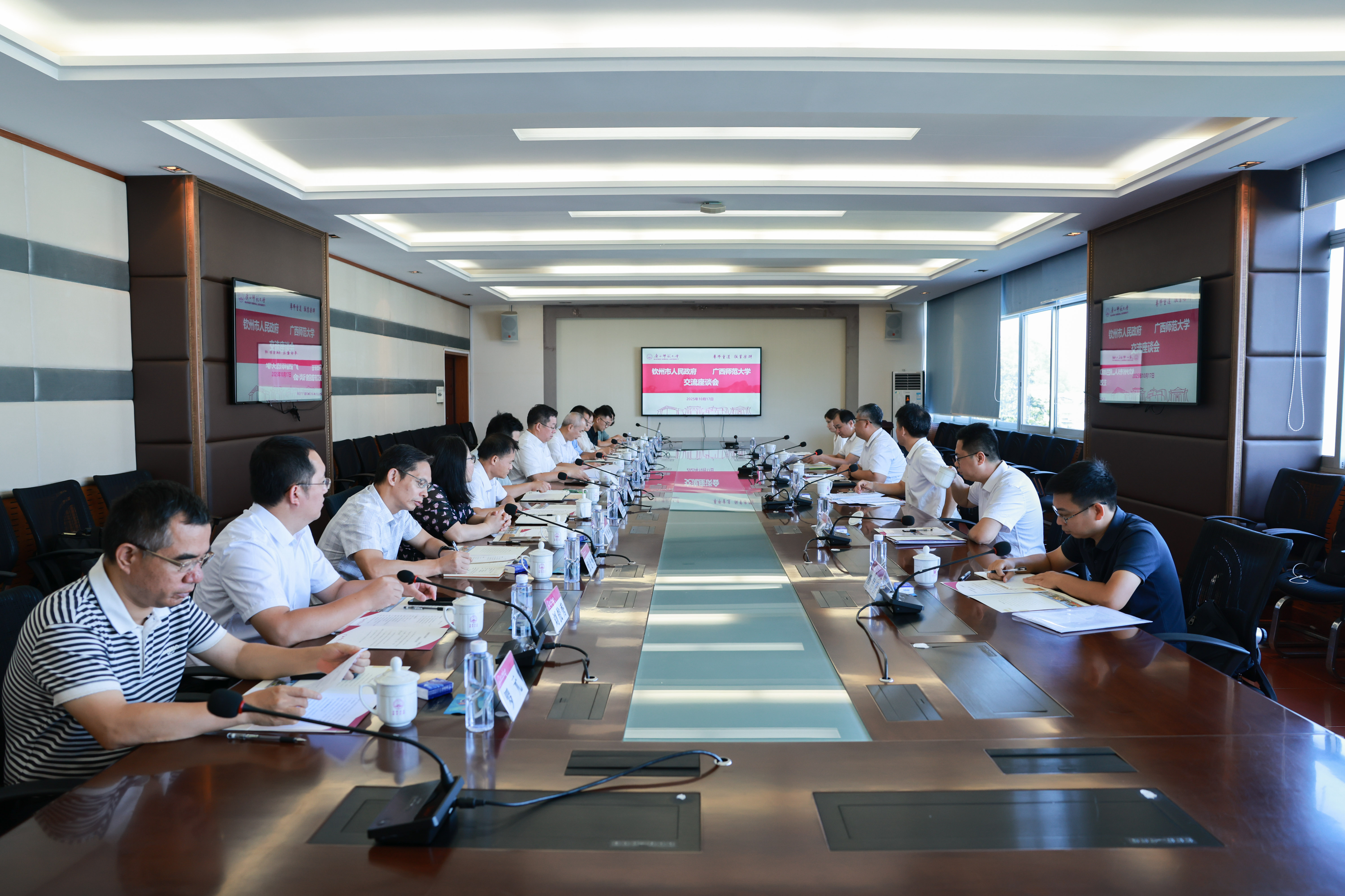 贺祖斌对钦州市副市长王文泽一行表示热烈欢迎,并介绍了学校的办学历史、学科建设、科研平台及标志性成果。特别回顾了自2010年与钦州市签署合作协议以来,双方在科技创新领域取得的合作成效。贺祖斌表示,学校将坚持开放合作,紧密对接钦州产业发展需求,推动教育、科研资源与地方产业精准匹配,期待在共建科研平台、联合技术攻关、深化人才交流培养等方面与钦州市开展更深层次、更宽领域的战略合作,实现互利共赢。