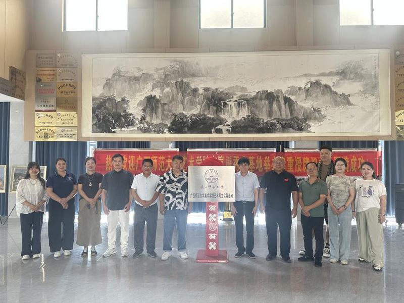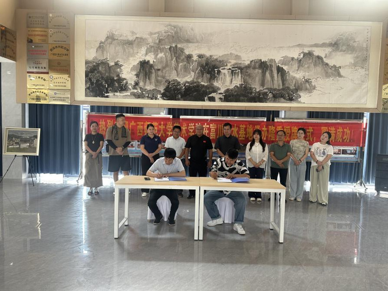 10月11日,广西师范大学美术学院与贺州富川秀水民族艺术写生基地正式挂牌合作。学院分管本科教学的行政负责人与基地负责人余一甲、富川文化旅游局局长林忠、副局长熊有东出席签约仪式,共同为基地揭牌。