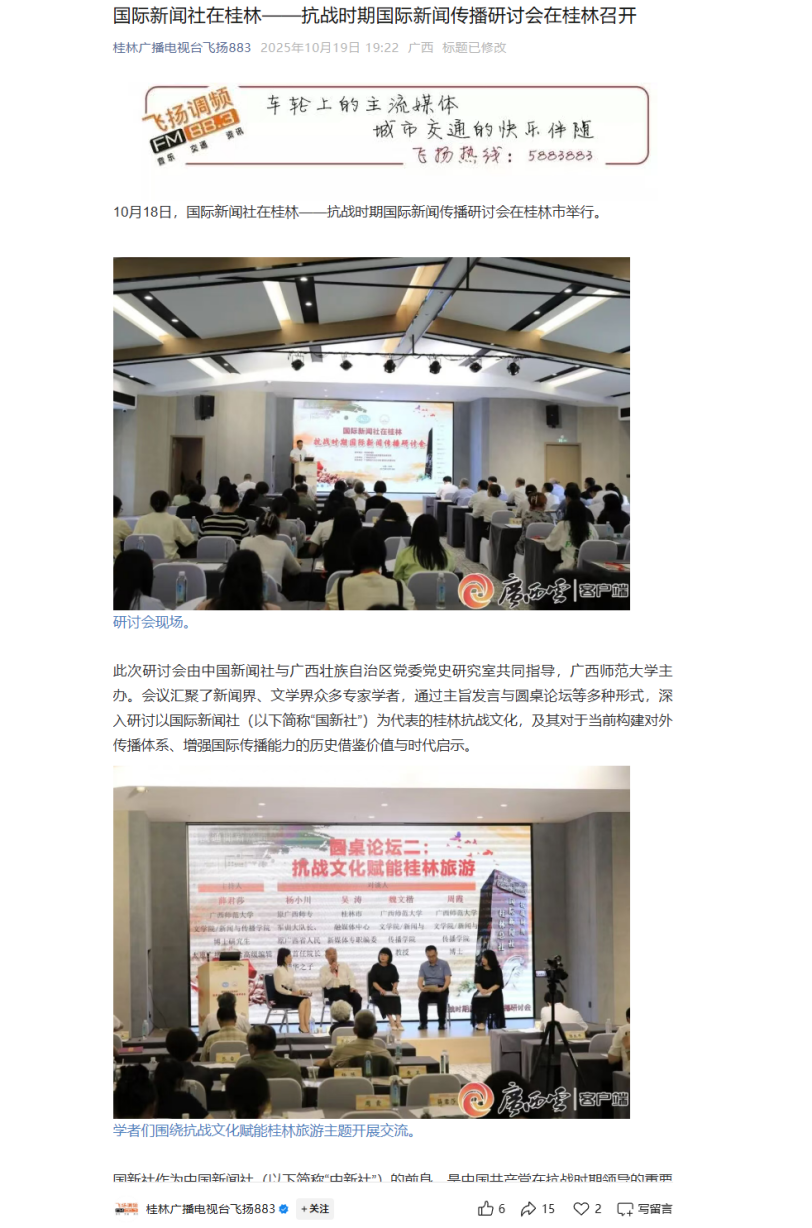 【人民日报】【中新社】【广西广播电视台】【广西新闻网】【桂林广播电视台】关注报道我校举办国际新闻社在桂林——抗战时期国际新闻传播研讨会