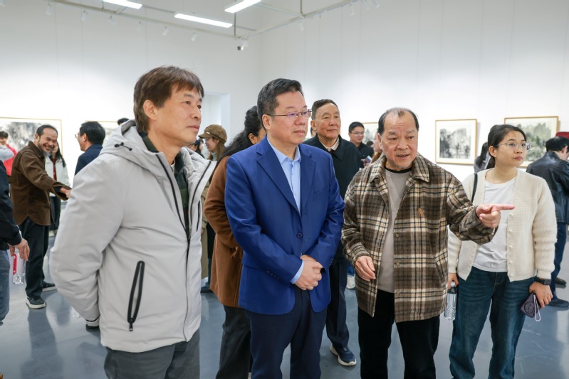 据悉,本次展览共展出白晓军教授不同时期的水墨艺术精品40余幅。其中,多幅以漓江、岭南风光为主题的作品,通过细腻的笔触、丰富的色彩,将地域文化特色与水墨艺术精髓完美融合,生动展现了他对故土的深厚情感与独特的艺术审美。此次展览不仅为广大艺术爱好者提供了近距离感受水墨艺术魅力的平台,更以“传承与关爱”为纽带,搭建起老艺术家与青年学子交流的桥梁,进一步推动了学校美育工作的发展,为传承和弘扬中华优秀传统文化写下了生动的一笔。