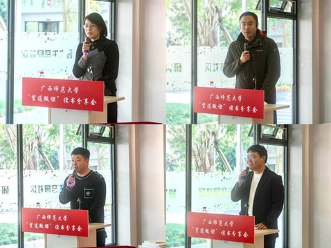 领读分享环节,美术学院潘冬梅老师解读书籍核心观点,奠定理论基础;计算机学院施林劼老师从“全员育人”分享协同机制实践经验;文学院黄瑶老师聚焦“全过程育人”,探讨各阶段思政重点;法学院王子龙老师围绕“全方位育人”,提出载体创新思路,为参会者提供实践参考。