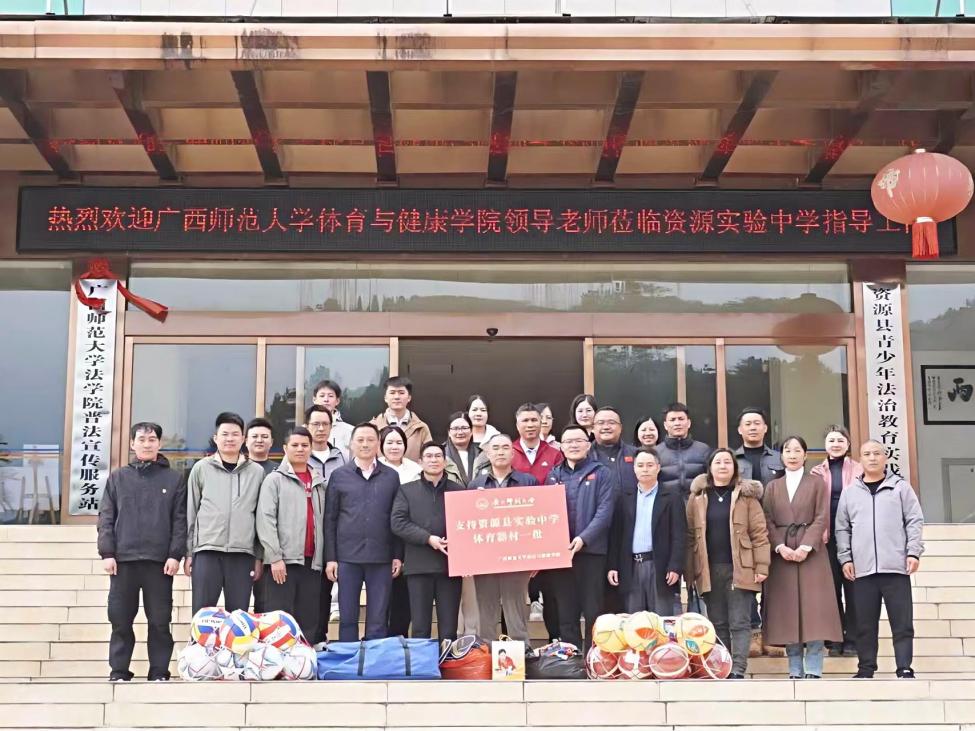 下午,师生团队前往资源实验中学开展“送教下乡”活动。学院党政负责人与该校围绕课程建设、师资培养、实习见习等议题展开座谈交流,同时与校友代表亲切座谈,搭建起校地体育教育协同发展的沟通桥梁。座谈结束后,学院向资源实验中学捐赠篮球、排球、足球、乒乓球等体育器材,为学校补充体育教学物资,夯实基层体育教育硬件基础。随后,学院党员教师代表及学生代表为该校学生带来一堂涵盖篮球、武术、田径、跳绳等内容的趣味体育示范课及防溺水教育实践课,将专业教学理念与实操技能精准输送至基层校园。