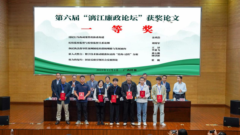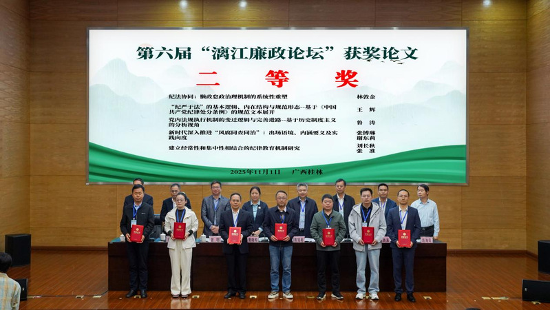 2025年11月1日,由我校主办,中共桂林市委党校、广西廉政建设研究中心、广西人文社会科学发展研究中心、广西地方法治与地方治理研究中心、广西师范大学党内法规研究中心联合承办的第六届“漓江廉政论坛”在桂林市委党校举办。本届论坛以“坚持用改革精神和严的标准管党治党”为主题。