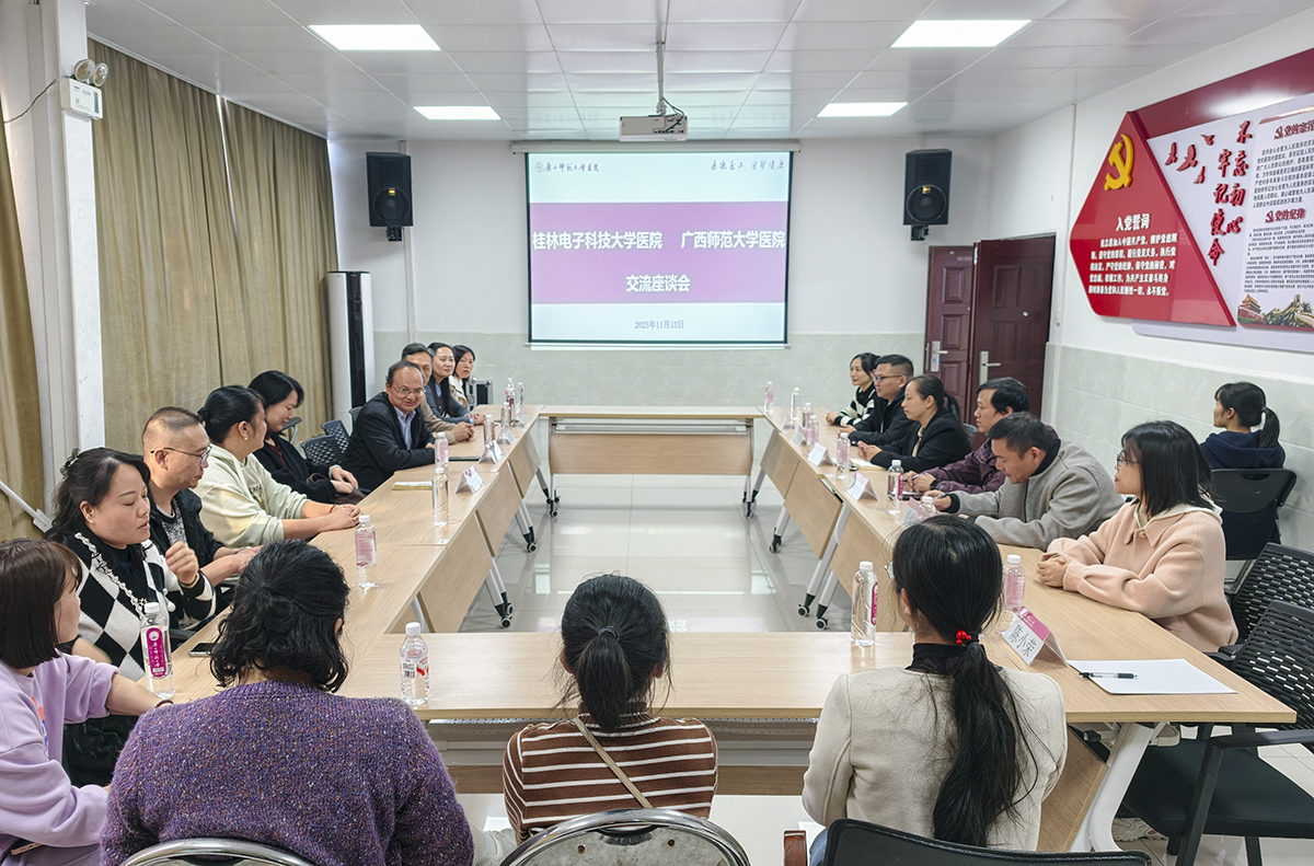 11月13日,桂林电子科技大学医院主要负责人带队一行到校医院雁山院区进行调研交流。校医院负责人及相关科室负责人在雁山院区会议室同对方进行座谈交流。