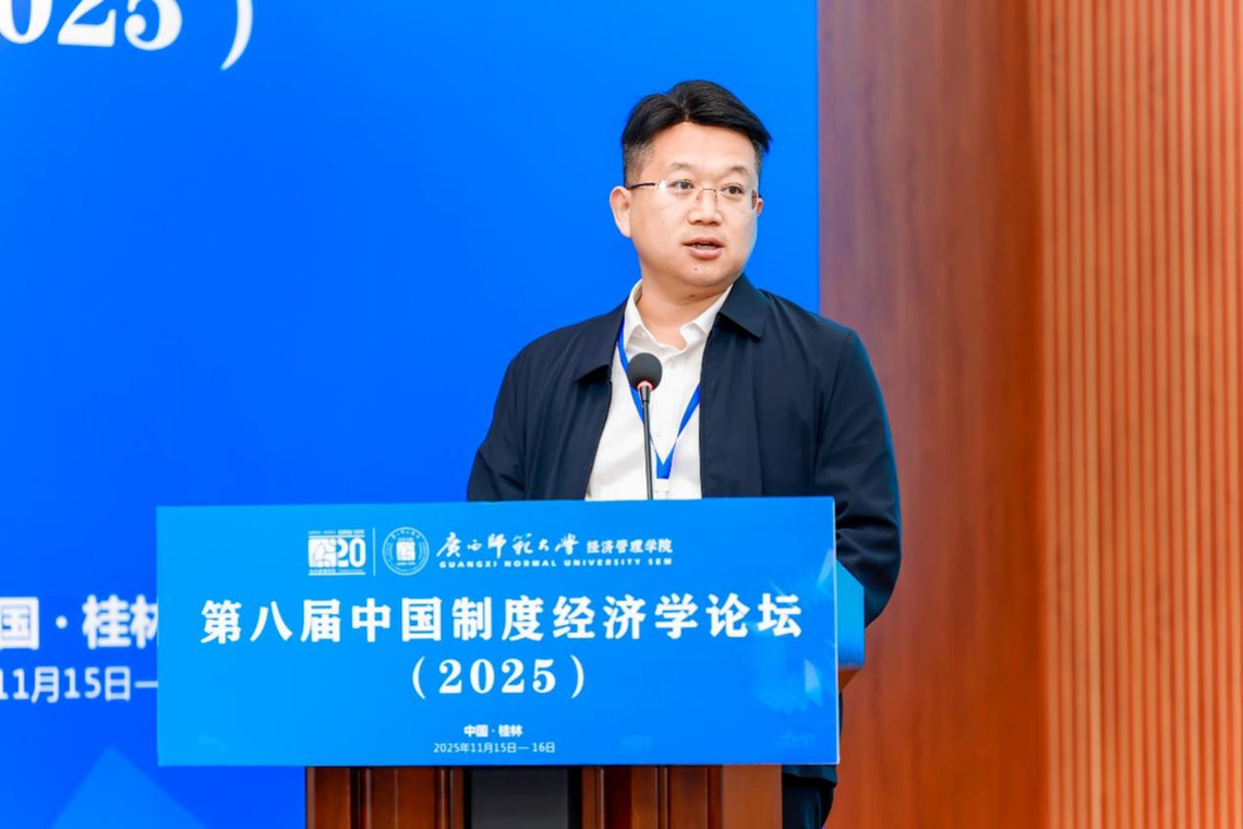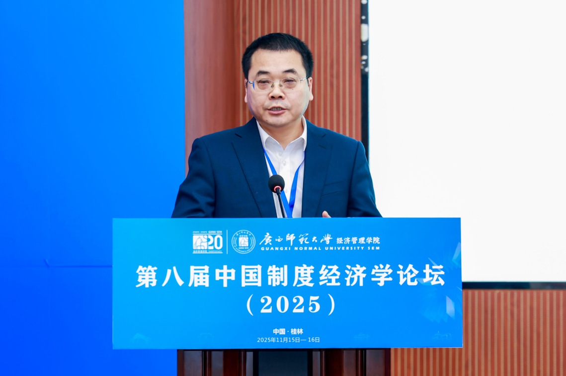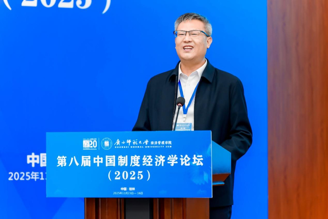 2025年11月15日—16日,由山东大学经济研究院、北京大学国家发展研究院、浙江大学经济学院主办,广西师范大学经济管理学院承办,《制度经济学研究》编辑部、广西高校数字赋能经济发展重点实验室协办的“第八届中国制度经济学论坛”在广西师范大学育才校区国际交流中心举行。本次论坛亦是广西师范大学经济管理学院成立20周年暨MBA办学15周年系列庆祝活动的重要组成部分。