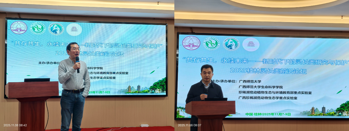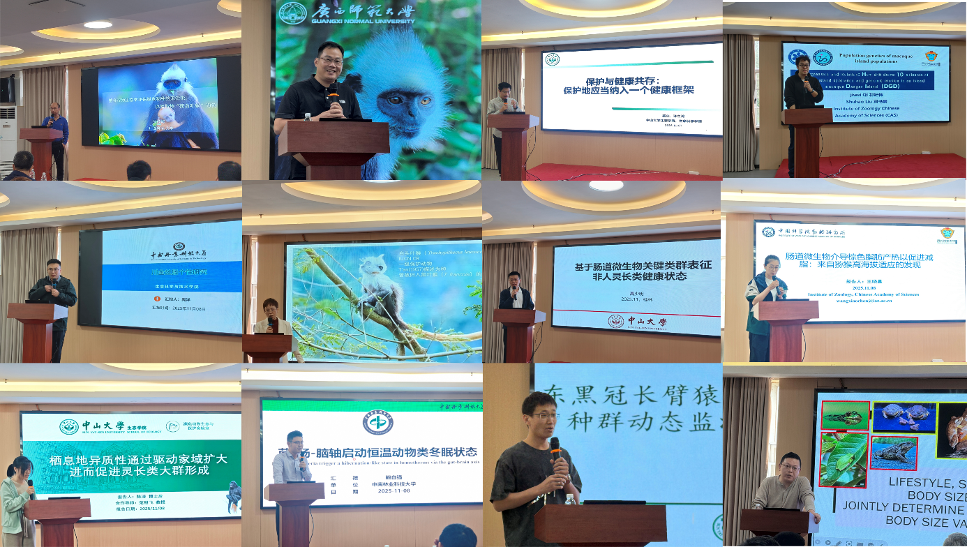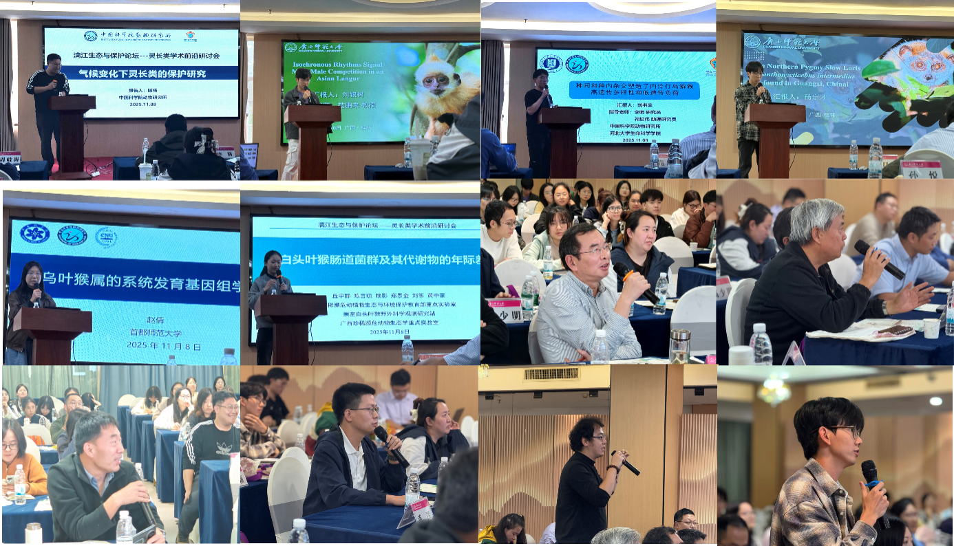 2025年11月7日至10日,“漓江生态与保护论坛——灵长类学术前沿研讨会”在桂林举办。本次会议由广西师范大学生命科学学院、珍稀濒危动植物生态与环境保护教育部重点实验室、广西崇左白头叶猴野外科学观测研究站及广西珍稀濒危动物生态学重点实验室联合主办。