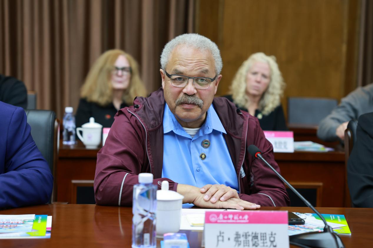 代表团团长卢・弗雷德里克对广西师范大学的热情接待表示感谢。他提到,广西的自然人文魅力与发展活力令人印象深刻,希望两地能在多个领域增进了解与合作。他特别指出,教育交流是两地合作的重要纽带,俄勒冈州希望与广西在教育领域加强沟通对接,通过多种形式深化合作,为两地关系发展夯实基础。
