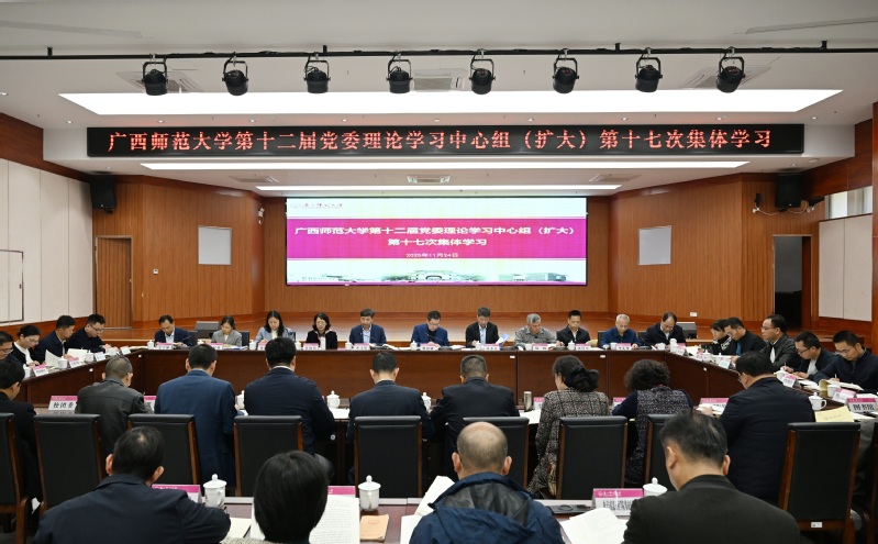 11月24日,学校第十二届党委理论学习中心组(扩大)第十七次集体学习会在我校育才校区国教2号楼201报告厅召开,会议专题学习党的二十届四中全会精神、习近平经济思想和习近平总书记关于统计工作的重要讲话和重要指示批示精神。校党委书记贺祖斌主持会议并作总结讲话,校党委副书记、校长孙杰远领学党的二十届四中全会精神。