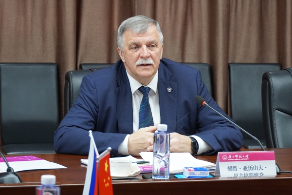 胡晋·亚历山大·尼古拉耶维奇校长对我校的热情接待表示感谢。他指出,库尔斯克国立大学在音乐、美术和设计等专业领域具有显著优势。他表示,库尔斯克国立大学将全力把握2026年至2027年中俄教育合作年的机遇,充分发挥学校学科优势,深入推进与广西师范大学的合作交流。为此,俄方计划于2026年秋季学期选派音乐领域的高水平教师来华授课,保障合作办学项目的教学质量。