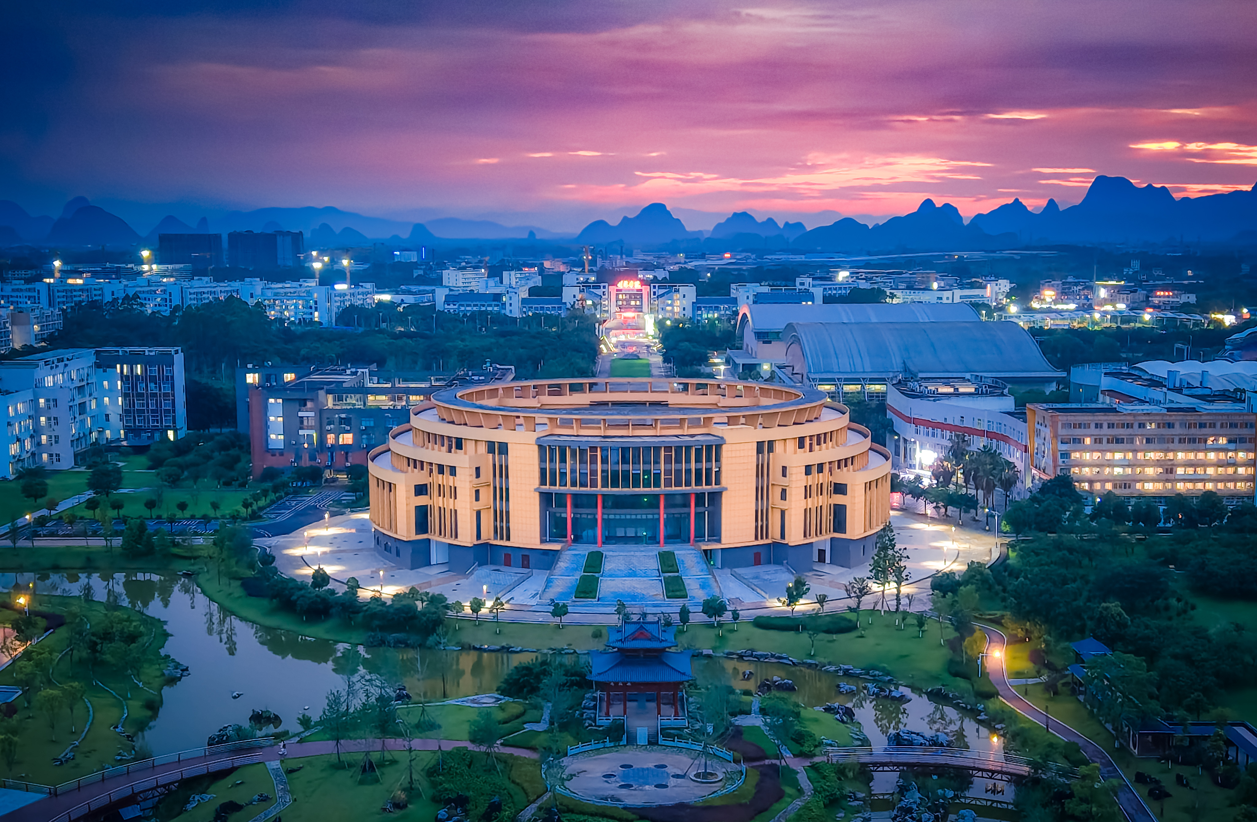 据了解,雁山校区大学生创新创业中心位于广西师范大学雁山校区的中轴线上,与师大图书馆遥相呼应,已成为学校最富标志性的建筑之一。大学生创新创业中心方案设计灵感来源于“莲花”,在湖边升起,寓意“高洁、坚韧、团结”的中华传统文化品格。中心大楼高五层,其最核心的功能为容纳1200人的报告厅,以及配套学院的创新创业孵化基地,教学办公等场所,是一座多功能复合型建筑,同时也是校园的文化中心地标。