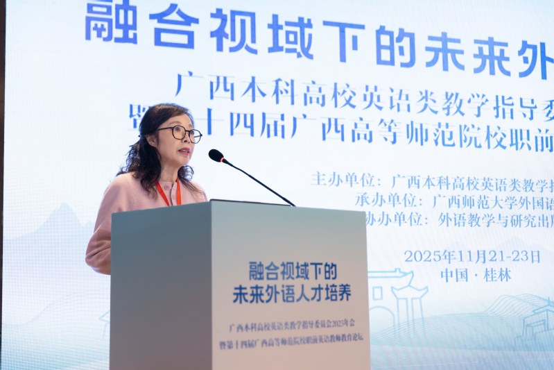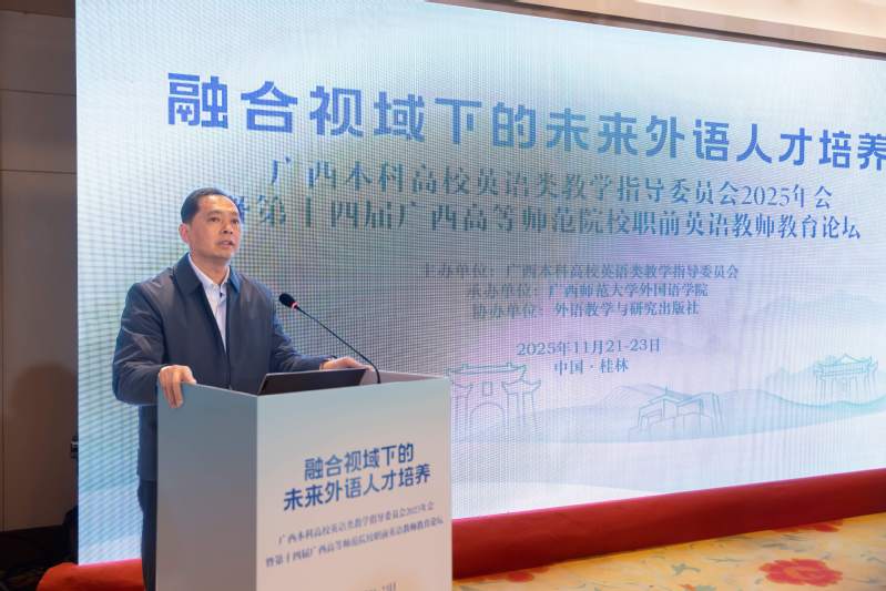 11月21日-23日,由广西本科高校英语类教学指导委员会主办,外国语学院承办的广西本科高校英语类教学指导委员会2025年会暨第十四届广西高等师范院校职前英语教师教育论坛在桂林举办。来自全区37所本科高校外语院系负责人及骨干教师近100人参加会议。