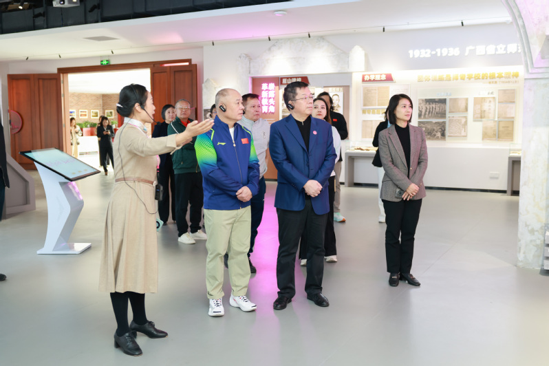 李宁集团创始人、董事长李宁一行实地考察广西师范大学雁山校区体育场馆、体育与健康学院、雁栖湖及校史馆