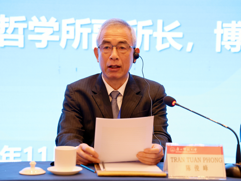 越南社会科学翰林院哲学所副所长陈俊峰博士在开幕式上致辞