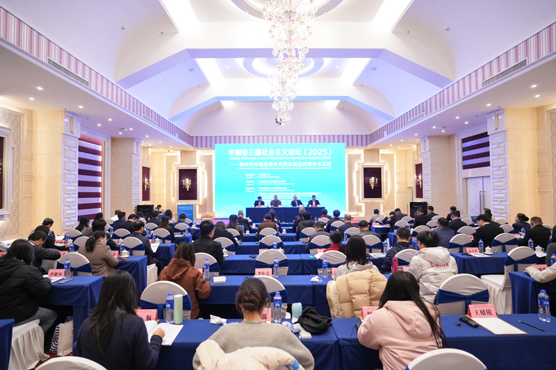 11月29日,由我校主办、我校马克思主义学院承办,广西马克思主义学院联盟秘书处、广西高校人文社科重点研究基地马克思主义理论与区域实践研究中心、广西师范大学21世纪马克思主义研究中心协办的“中越老三国社会主义论坛(2025)”在桂林举行,此次论坛的主题是“新时代中越老携手共同体建设的理论与实践观研究”。来自越南社会科学翰林院哲学所、胡志明国家政治学院第四区政治学院、河内国家大学所属社会科学与人文大学、老挝国家政治与行政学院、老挝社会经济科学院的22位学者,以及中共中央党校(国家行政学院)、中国社会科学院马克思主义研究院、山东大学、郑州大学、南京师范大学、陕西师范大学、天津师范大学、福建师范大学、河南师范大学、阜阳师范大学等院校的专家学者,和我校马克思主义学院师生代表100余人参会。