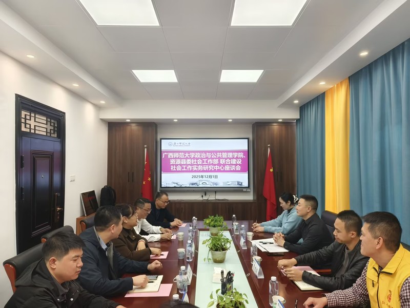 12月1日,广西师范大学政治与公共管理学院与资源县委社会工作部联合共建社会工作专业实习实践基地座谈会暨社会工作实务研究中心挂牌仪式在育才校区举行。