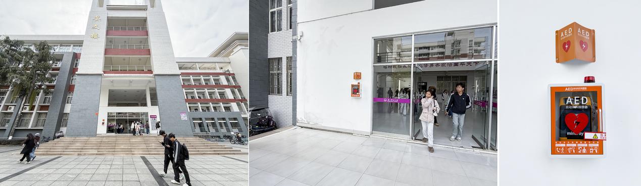 在育才校区,化学与药学学院通过自行采购AED,交由校医院负责管理运维的形式,显著增加了学院楼宇AED的布设密度,为师生提供了更多的安全保障。