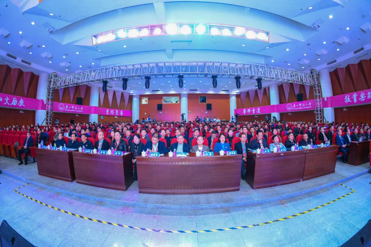 12月7日上午,广西师范大学法学院建院20周年高质量发展大会在雁山校区音乐学院三楼综合厅举行。广西师范大学党委副书记莫坷、副校长黄晓娟,上海市人大法制委副主任委员、华东政法大学原校长叶青,自治区人大监察和司法委员会黄耀革副主任委员,中南财经政法大学原副校长姚莉,广西警察学院原校长张军,广西警察学院副校长蒋超,北京师范大学法学院院长梁迎修,西南政法大学国际法学院院长周江,桂林市政府二级巡视员邹玉章,桂林旅游学院党委常委、副校长刘旸,梧州学院党委常委、纪委书记叶昊,广西师范大学党委常委、统战部部长毛立刚及各级党委政府有关部门领导、法学院校领导、法律实务界、行业导师代表,优秀校友代表,学校各职能部门、各学院(部)负责人,学院离退休教师代表、学生代表500余人齐聚一堂,忆往昔峥嵘岁月,绘未来发展新篇。大会由学院党委主要负责人主持。