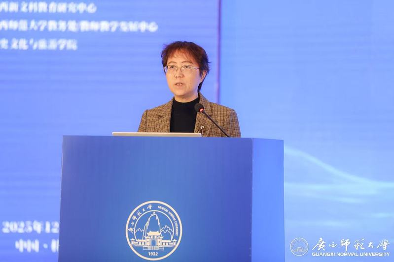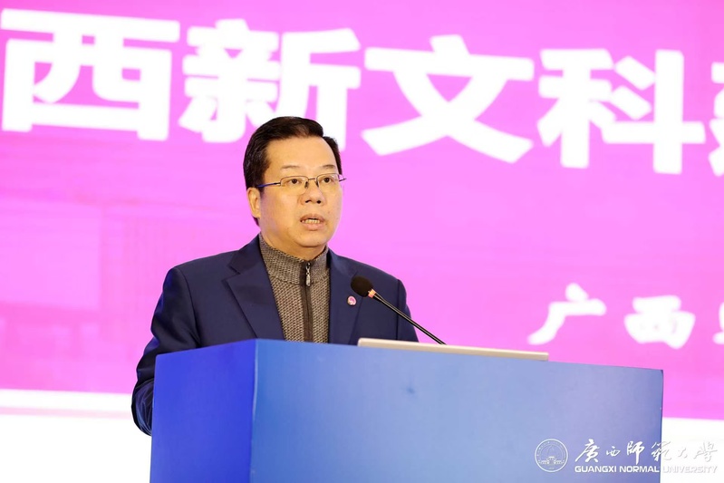 12月9日,2025年广西新文科建设论坛在桂林召开。广西新文科教育研究中心主任、广西师范大学党委书记贺祖斌教授出席论坛,总结广西新文科建设情况并作主旨报告。自治区教育厅高教处处长李辉善出席论坛并致辞。