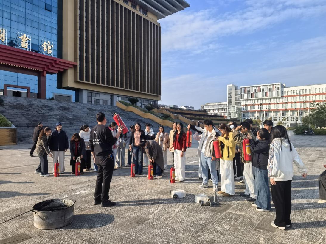在保卫处人员的示范与指导下,活动现场分组进行了干粉灭火器与二氧化碳灭火器的实操训练,熟悉“提、拔、握、压”操作要领。