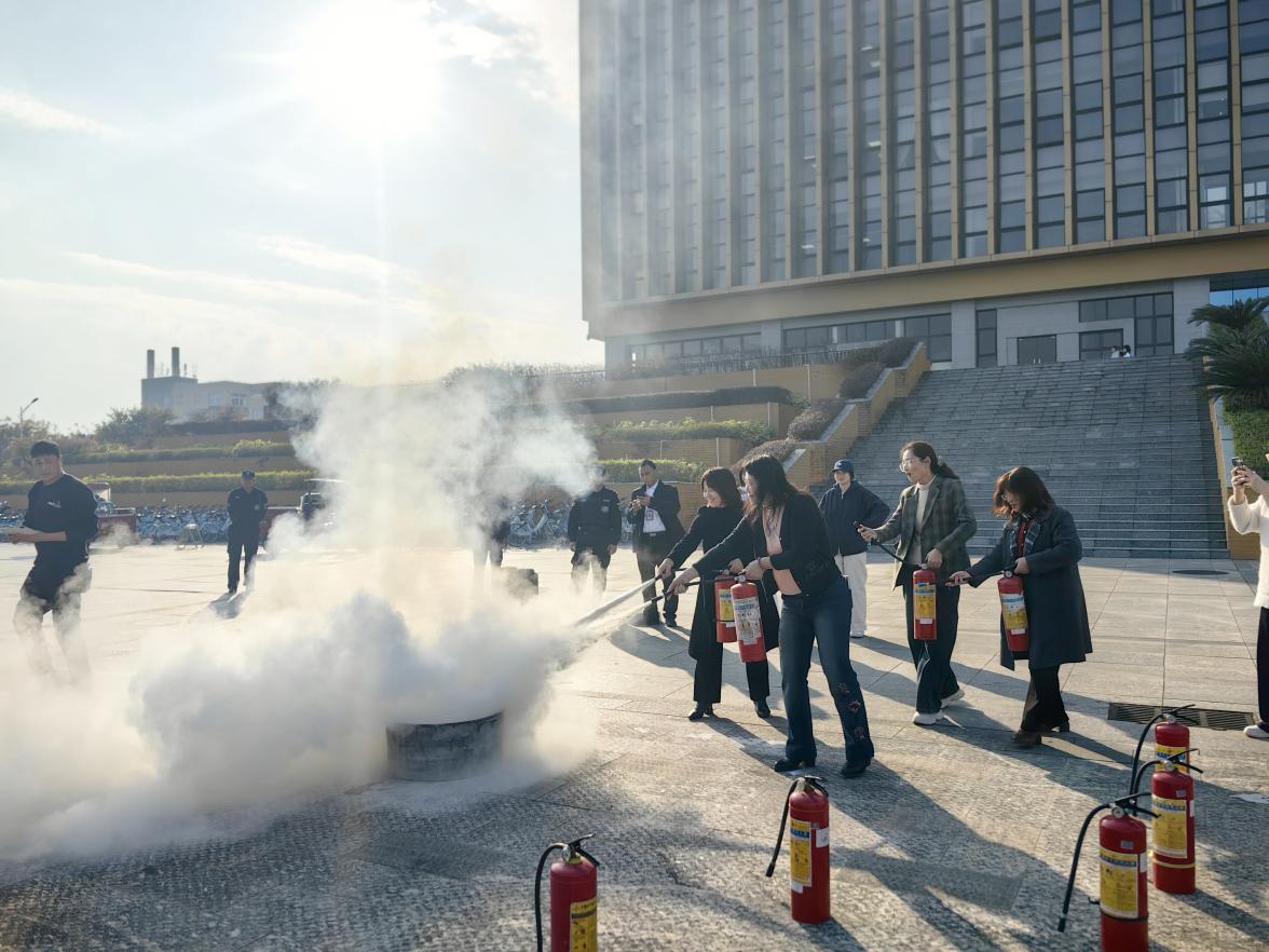 活动分为理论培训与实操演练两部分。在理论培训阶段,学校保卫处主要负责人开展了消防知识专题讲座,重点讲解了火灾预防、初期扑救及应急疏散等知识。随后,全体人员移至图书馆正门广场。在演练开始前,副校长沈星灿亲临现场并作动员讲话。她指出,档案馆作为学校重点安全单位,馆藏档案具有重要的历史与文化价值,消防安全至关重要,并且强调,全体人员要增强安全防范意识,通过常态演练提升应急能力,为平安校园建设打下坚实基础。