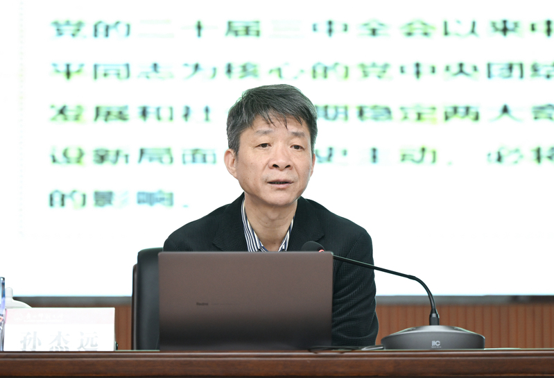 孙杰远校长围绕党的二十届四中全会精神,从六个方面进行了系统阐释和深入解读:一是深刻领会党的二十届四中全会的重大意义;二是准确把握“十五五”时期在基本实现社会主义现代化进程中的重要地位;三是深刻领会“十五五”时期经济社会发展的指导方针和主要目标;四是全面理解“十五五”时期经济社会发展的战略任务和重大举措;五是坚持和加强党的全面领导,凝聚起推进中国式现代化的磅礴力量;六是切实推动全会精神学习转化为推进国内一流大学建设的生动实践。