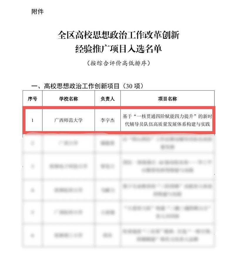 近日,根据自治区教育厅下发的《自治区教育厅关于公布全区高校思想政治工作改革创新经验推广项目入选名单的通知》,经组织专家评审,我校共有1项高校思想政治工作创新项目、1项高校文艺作品创新项目、3项高校思想政治工作创新案例获奖。本次获奖项目和案例围绕落实立德树人根本任务,展示了我校思想政治工作的成果。