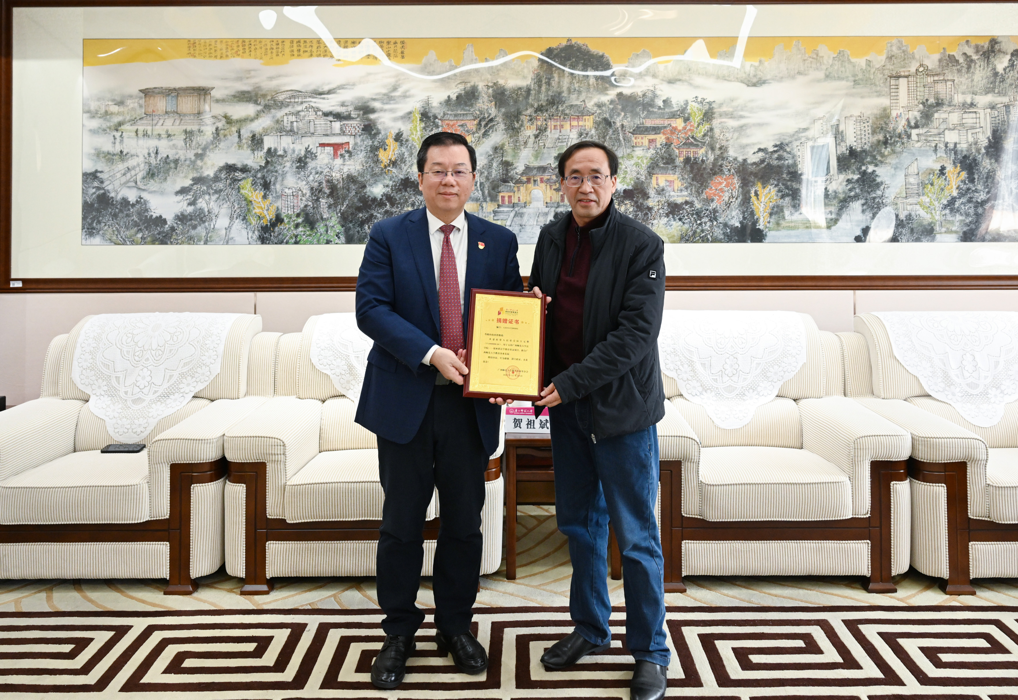 贺祖斌书记给倪业群教授颁发捐赠证书